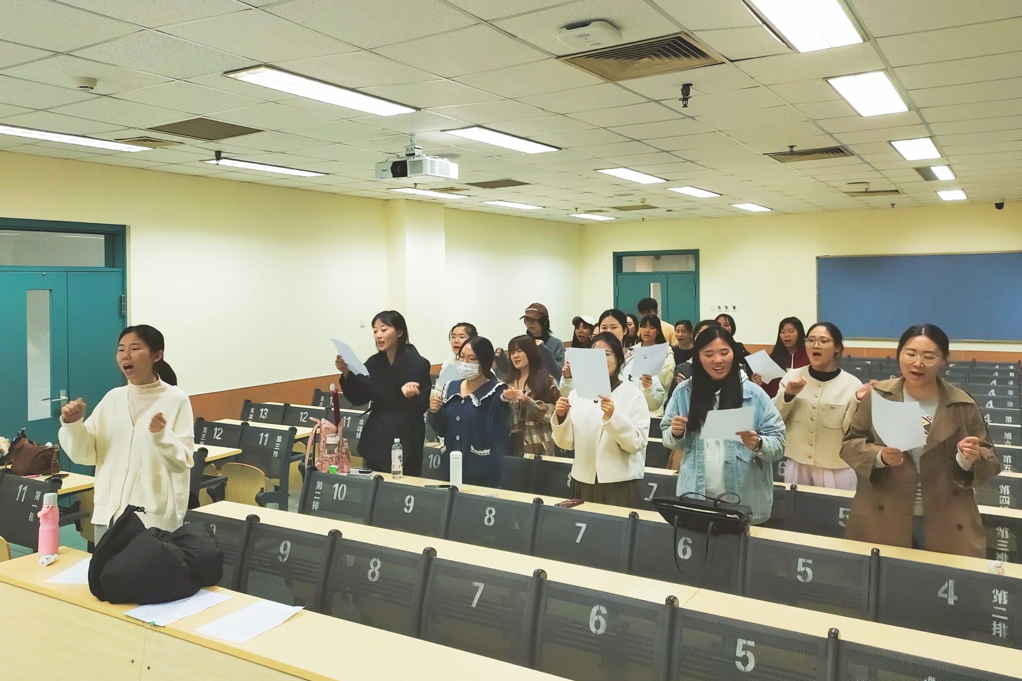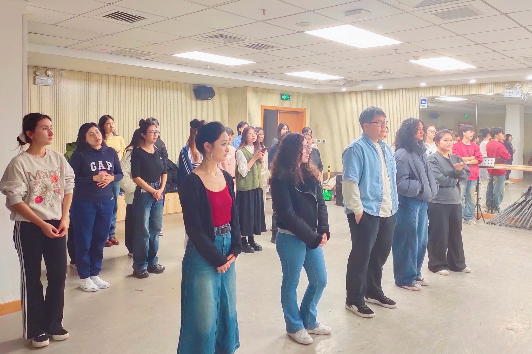 博士,有来自翻译、国际组织与全球治理等专业的招收的国际本科生······我们的合唱阵容同样会集了来自亚、欧、美、非八个国家的国际学生与来自多个民族的中国学生,如此丰富多彩的演出团队本身就是对“五色交辉,相得益彰;八音合奏,终和且平”的生动诠释。