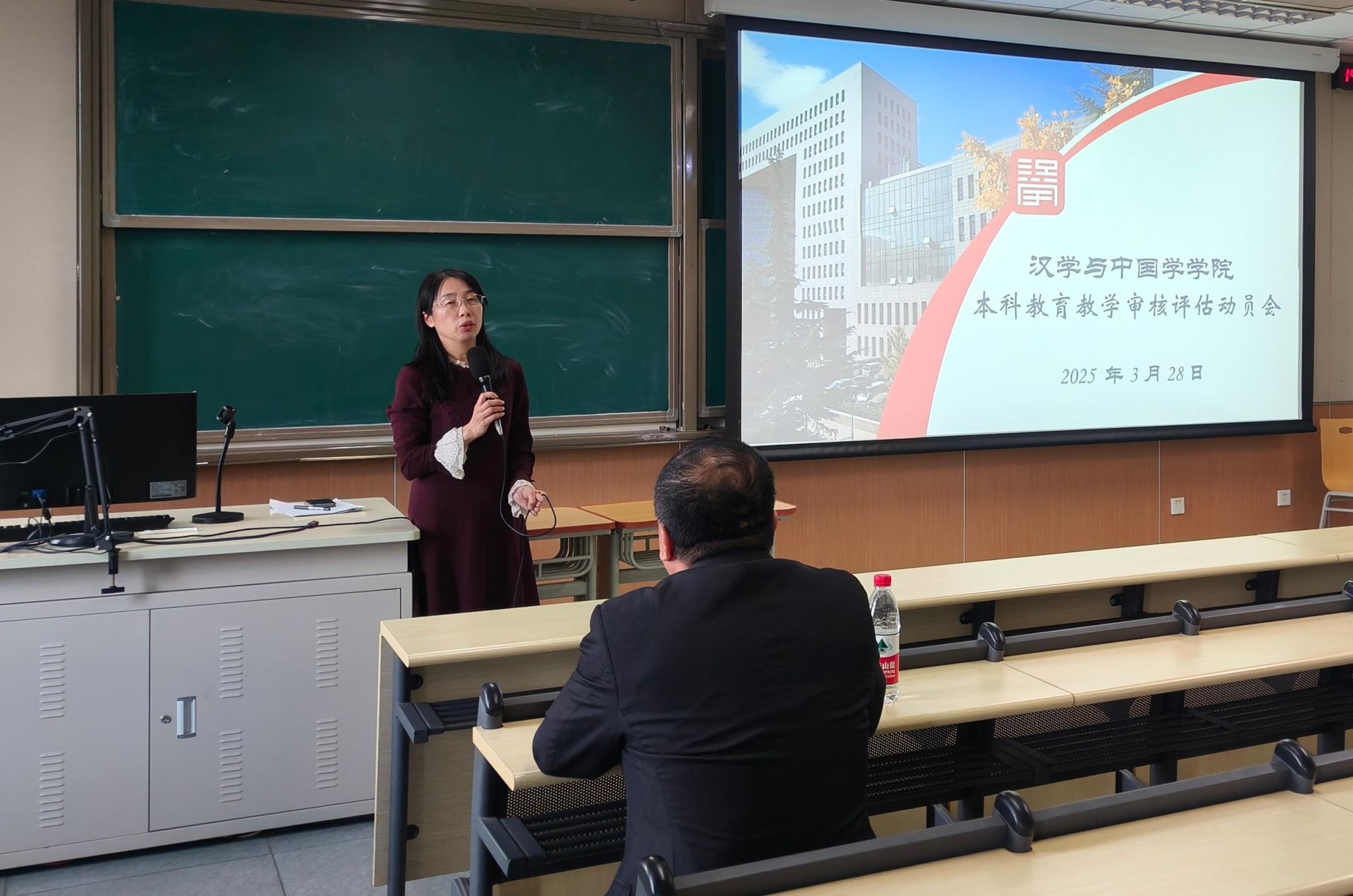 随后,学院办公室主任李宏老师对学院本科教育教学审核评估组织机构和工作职责进行了详细介绍。