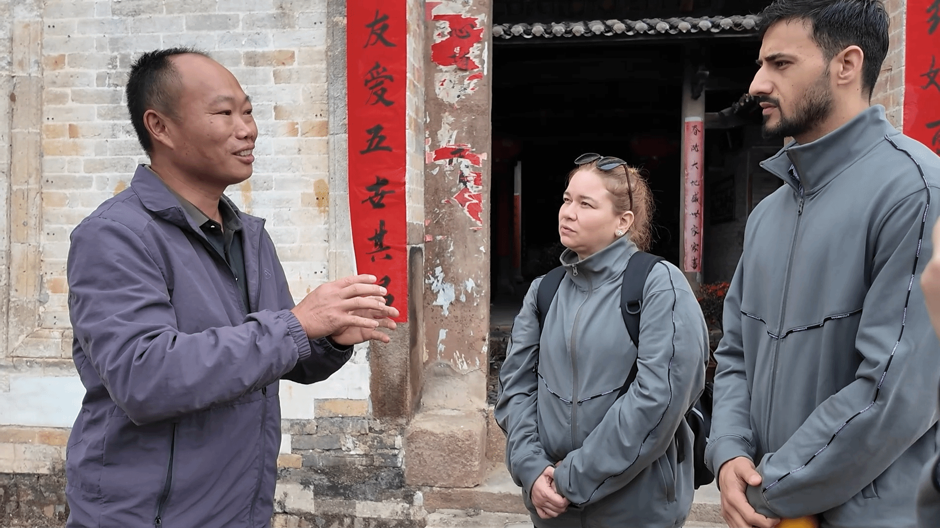 乡音与民俗是文化传承的核心密码。在第一、二小组调研的谢乌村,男女老少日常交流使用的客家方言,承载着当地谚语、山歌等地方性知识,成为维系情感的无形纽带。尽管客家方言面临着年轻一代传承淡化的挑战,但寻乌人通过开展民俗活动、加强方言保护宣传等方式,全力守护这一独特的文化基因。小组中的国际学生们在角背围品尝客家茶、体验民俗活动,更让客家文化的包容性与感染力跨越语言边界。