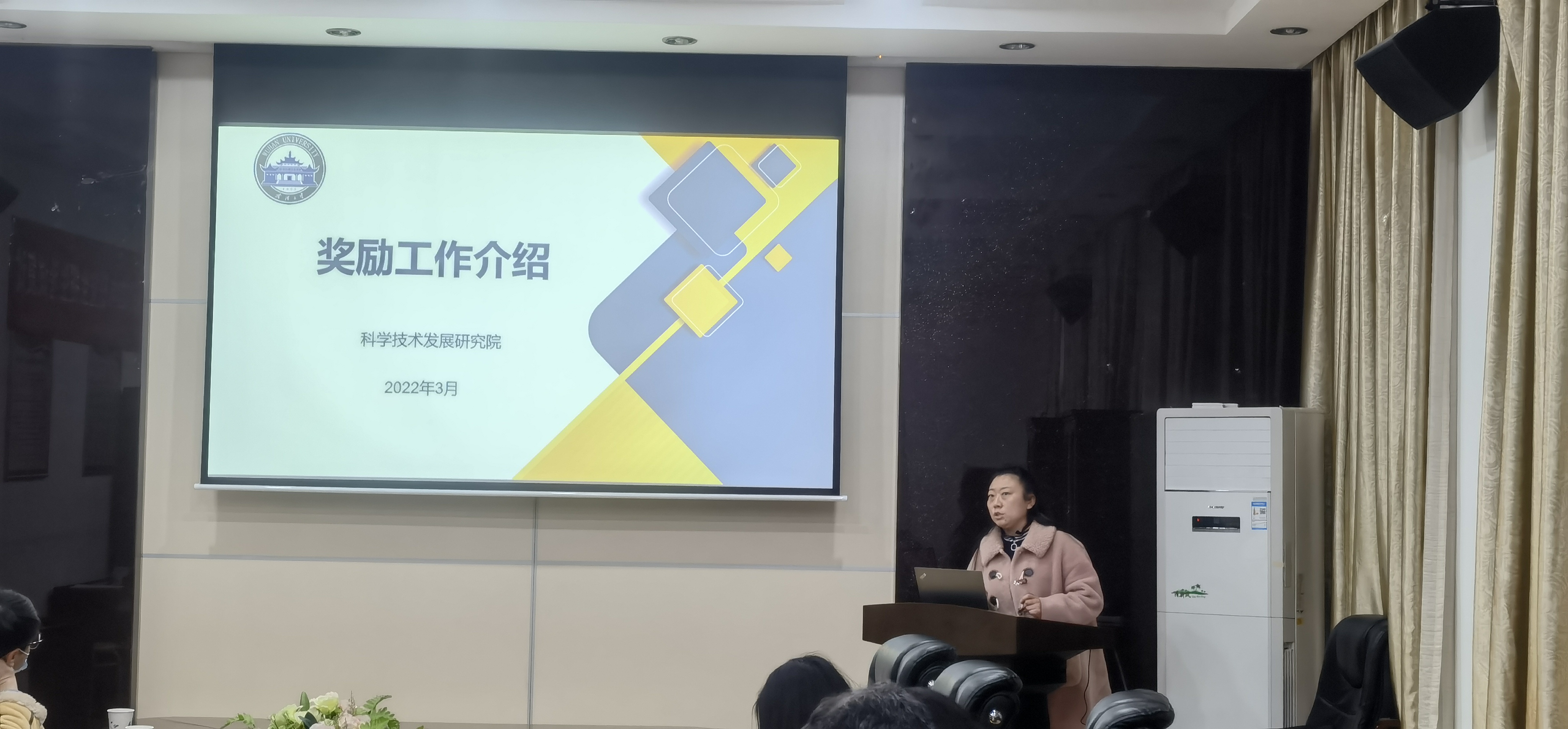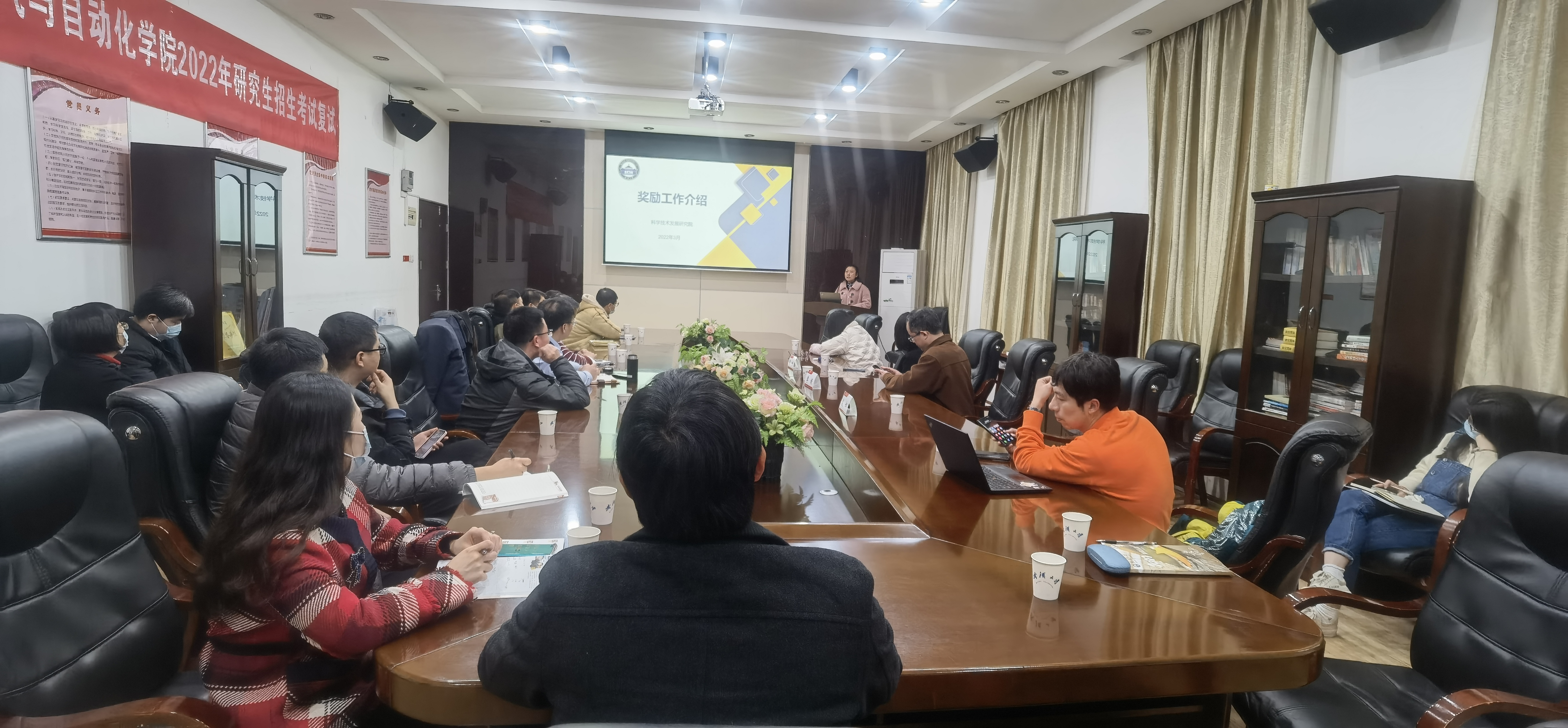 2022年3月25日下午,皇冠信用网 邀请科发院李振副院长、项目处熊鸣主任、成果处殷娜主任来院在四会议室指导科研工作。李院长从自然科学基金的特点、基金评选原则、申报注意事项等方面对国家自然科学基金申报工作做了指导,殷主任从报奖流程、省奖介绍、学校高水平科研成果认定和行业奖社会力量奖设奖等4个方面对学校科技奖励工作作了详细介绍。
