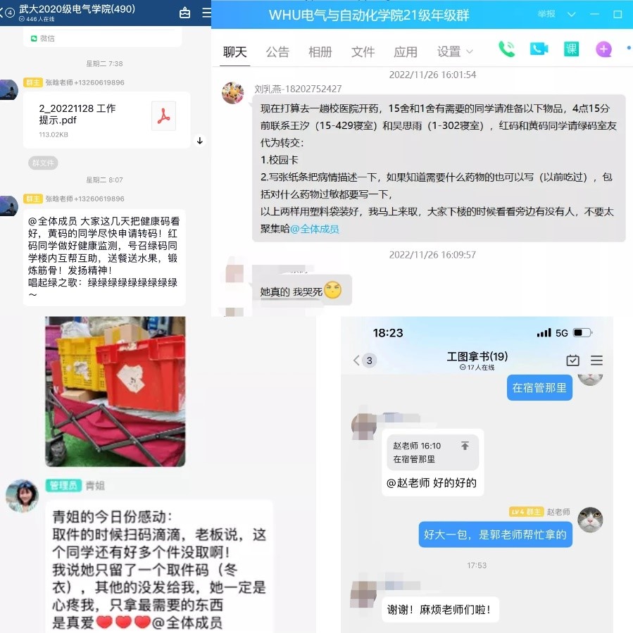 党委承担工学部1舍、2舍、3舍共三栋宿舍楼2252名同学及工学部家属区3栋2单元的全面保障任务。学院党委领导、辅导员、抗疫突击队的老师们和所有保障我们学习生活的工作人员,是我们封控日子里最可爱的人!