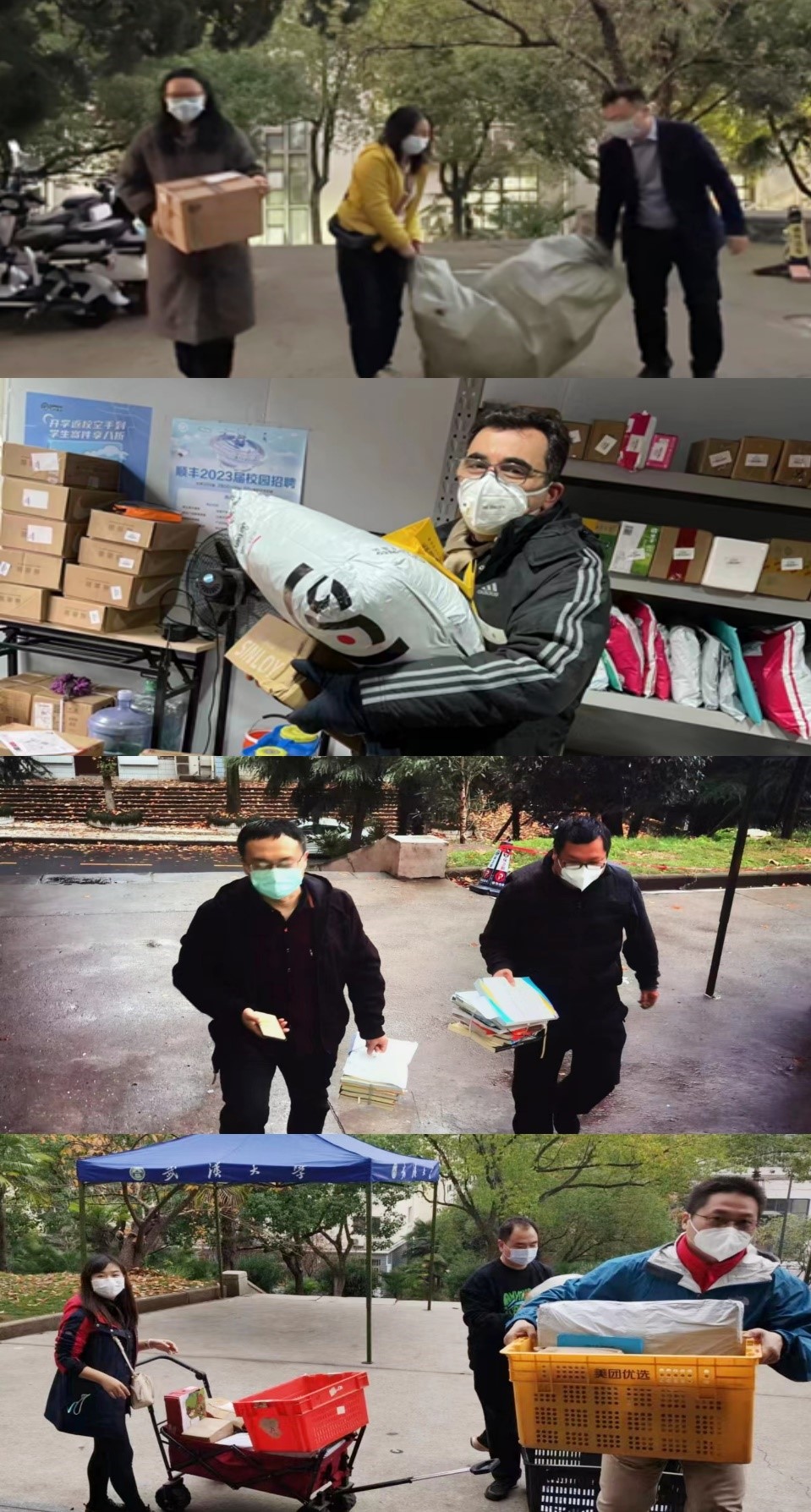 (电气党员突击队为学生取送快递和学习用品)