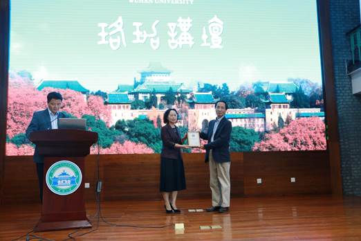 10月24日,珞珈讲坛第307讲,华中科技大学国家特聘教授袁小明教授带来《原始创新,我们的历史责任》的报告,校党委常委吴平副校长为其颁发珞珈讲坛纪念牌。