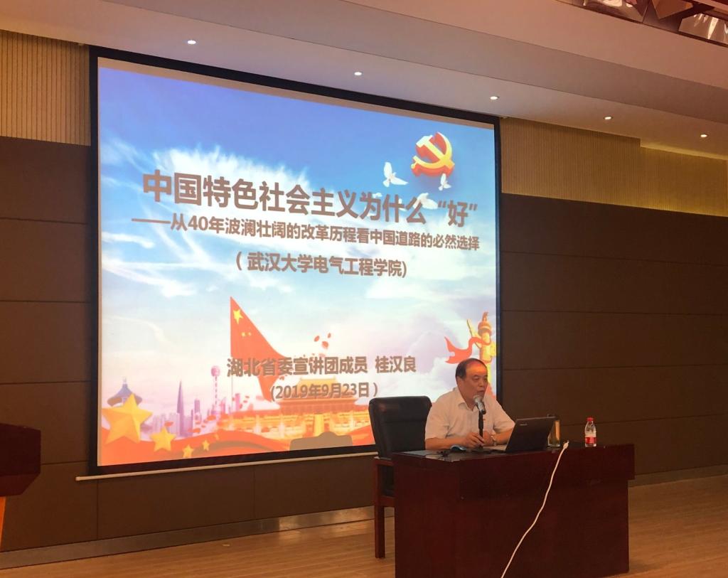 9月23日下午,湖北省社会主义学院副院长桂汉良以《中国特色社会主义为什么“好”——从40年波澜壮阔的改革历程看中国道路的必然选择》为题,为皇冠信用网