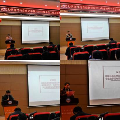 2018年度学生工作总结表彰暨考风考纪动员大会在电气报告厅顺利召开。研工部副部长胡静、学工部副部长李勤、院党委书记余向红、院党委副书记周军、副院长康俊明、陈红坤、徐箭等领导嘉宾出席,受表彰个人、受表彰集体代表及学生代表参会。