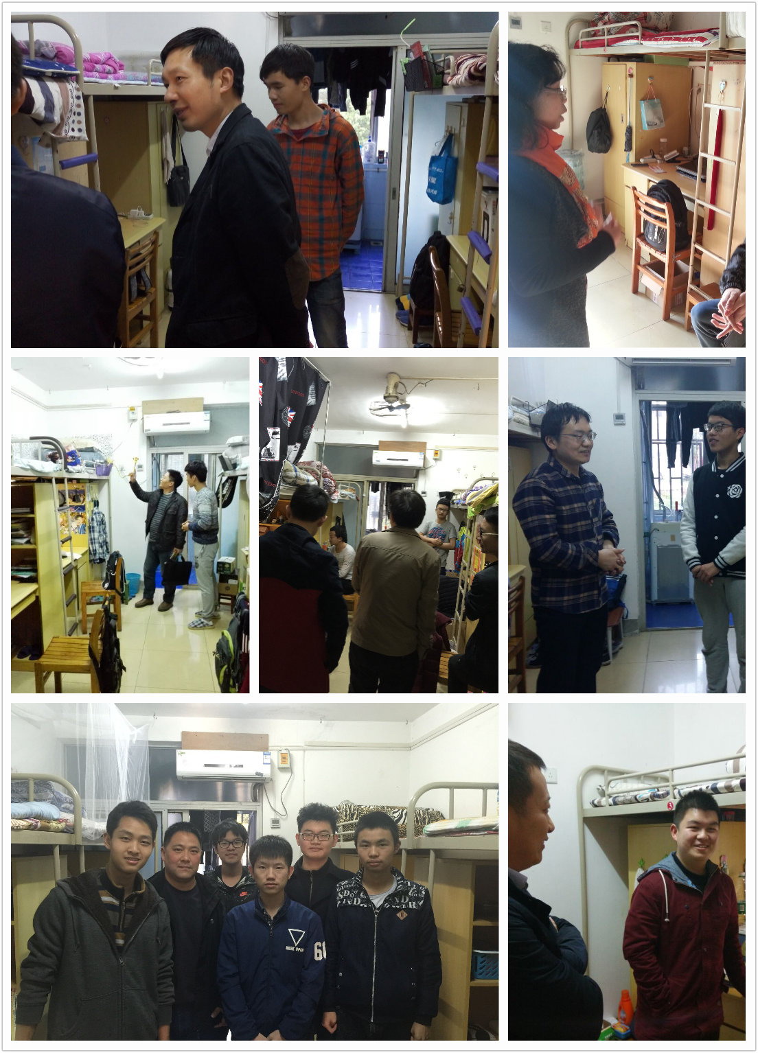 2015级举办了班级会议与师生查寝活动,成效喜人。在班级会议上,同学们积极提问,老师们细心解答,关切每位同学的生活学习状况,就学习状态、学习方法以及学习困难等方面对同学们今后的生活做出了指导,让同学们大有收获。在师生查寝活动中,老师们在班委的陪同下对本班寝室进行了检查,关切同学们的寝室生活,就寝室生活、同学关系等方面与同学们细心交谈,让同学们十分感动,大大拉近了师生距离,加强了师生理解,增进了师生友谊。