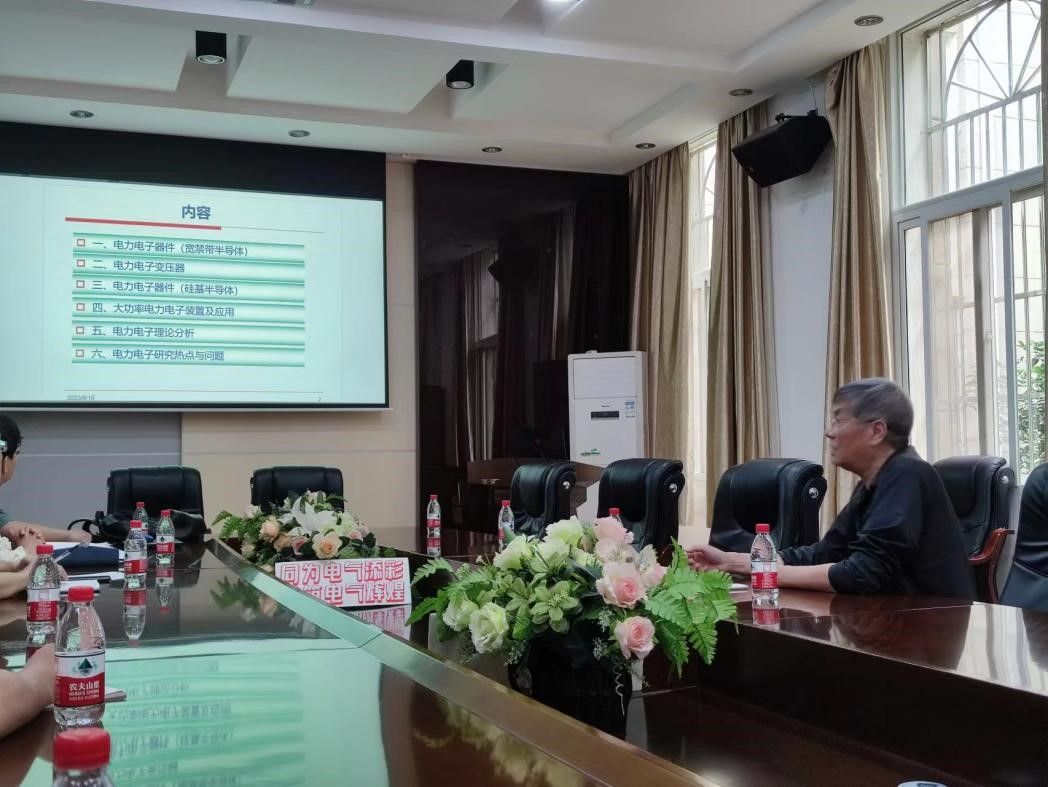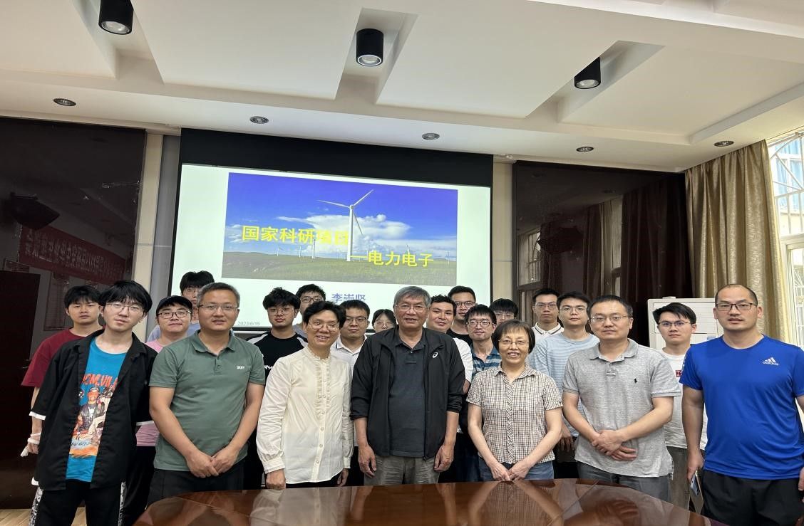 会议伊始,陈剑飞教授向各位老师及同学介绍了李崇坚总工,重点介绍了李总工在国家冶金自动化领域及交流电机变频调速领域所取得的重大成就,并代表学院表达对李总工的热烈欢迎。随后李崇坚总工做电力电子国家科研项目主题报告,从宽禁带半导体、电力电子变压器、电力电子用中高频磁性元件、硅基半导体器件、电力电子装置、储能与智能电网技术、电力电子理论分析等多个方面,介绍了国家的科研成果以及各重点项目中所遇到的问题,并就未来电力电子发展方向与在座师生展开热烈讨论。最后,李总工与全体师生合照,与会者反映李总工的报告内容很精彩,收获满满。