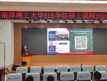 随后,Dr. Michelle Shao向与会师生介绍了南洋理工大学EEE学院的硕士课程,分享了EEE学院的学习环境和科研设施,包括先进的实验室设施、图书馆资源等。此外,针对联合培养项目,Dr. Michelle Shao也对为同学们关心的学费情况以及语言要求作出了介绍。会场气氛热烈,宣讲效果良好。