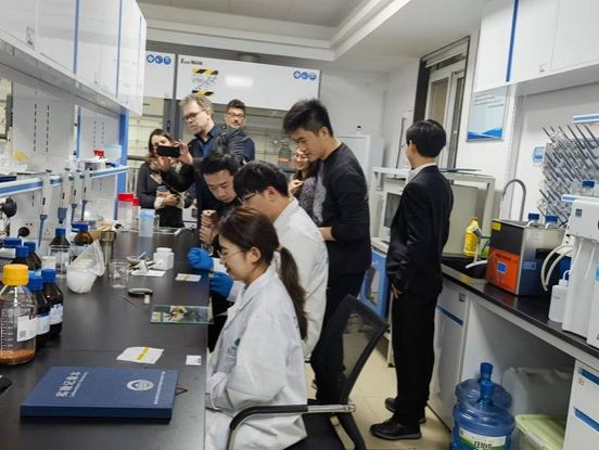 座谈会后,来宾一行参观了储能与新能源实验室,了解了学院在电解水产氢、光伏以及碳转换等领域的研究成果。