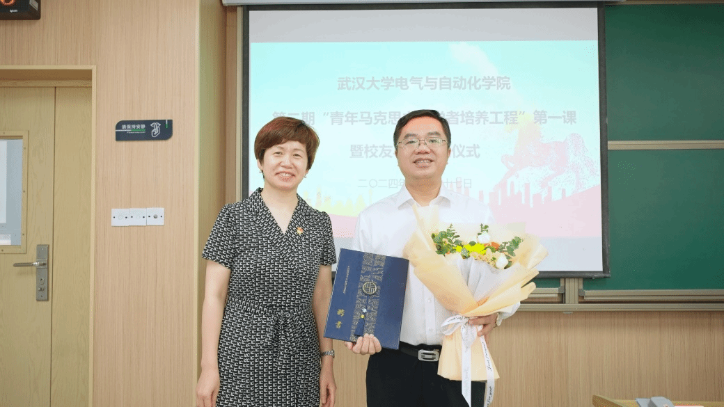 活动第二项,由符永锋校友为青马班学员们进行授课。在加快推进新质生产力发展的大背景下,符永锋校友以特高压、新型储能、“伏羲”芯片和电力鸿蒙OS等十个关键词为重点,讲述了南方电网公司攻坚克难、不断创新的发展历程,同时介绍了南方电网公司青年人才队伍建设情况和2023年“大国工匠人物”李辉的先进工作事迹,以此来鼓励电气青马班学子们在校期间努力学习专业知识、认真锤炼技能本领,把牢专业技术的立身之本,未来争做行业内的“大国工匠”。符永锋校友强调,创新和发展离不开高科技人才,希望青马班学员们学好真本领、报效新时代,在新型电力系统、新型能源体系建设的新征程上奋发有为!