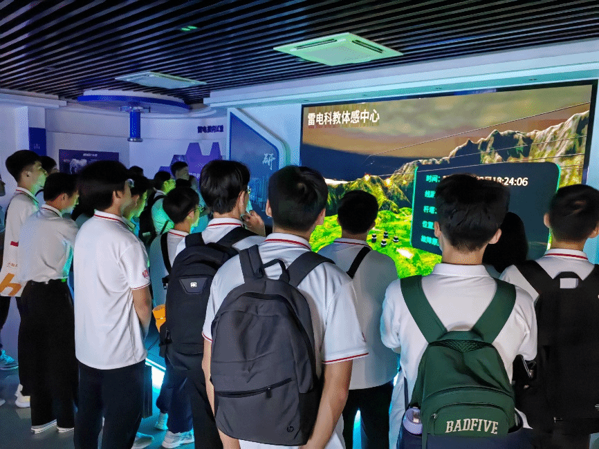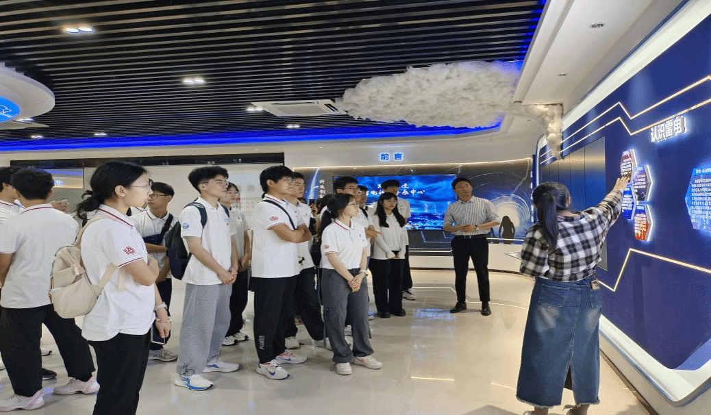 紧接着,工作人员向大家介绍了武汉南瑞雷电科普教育基地建设情况,该基地包含雷电科教体感中心和创新成果展览区,通过声光影联动、模拟试验与实物展示等多种手段普及雷电基本知识及前沿研究成果,深入浅出地对雷电基础理论、研究实践成果等进行介绍,让大家在近距离感受雷电科学探索的奥秘的同时,也增进了对雷电生成原理以及一些防雷安全措施的了解。通过操作实验装置、实地体验轻微触电感、3D观察雷电形成过程、趣味问答竞赛等环节,同学们在欢乐中收获了不少知识。