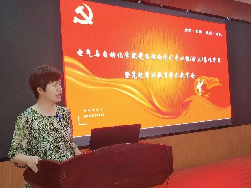随后,学院党委副书记孟威结合校内案例进行了警示教育。她详细介绍了警示教育的七个典型案例,强调要坚持以案为鉴、警钟长鸣,始终保持忠诚干净担当的政治本色,切实做到衷心拥护“两个确立”、忠诚践行“两个维护”。要严守纪律规矩,筑牢防线底线,坚持用党章党规党纪自觉规范自己言行、校正思想行动,做到凡事心中有杆秤,明确什么事该做、什么事不该做。要坚持举一反三,深入检视整改,做到忠诚干净担当,不断推动党纪学习教育与学院事业发展同出成效。
