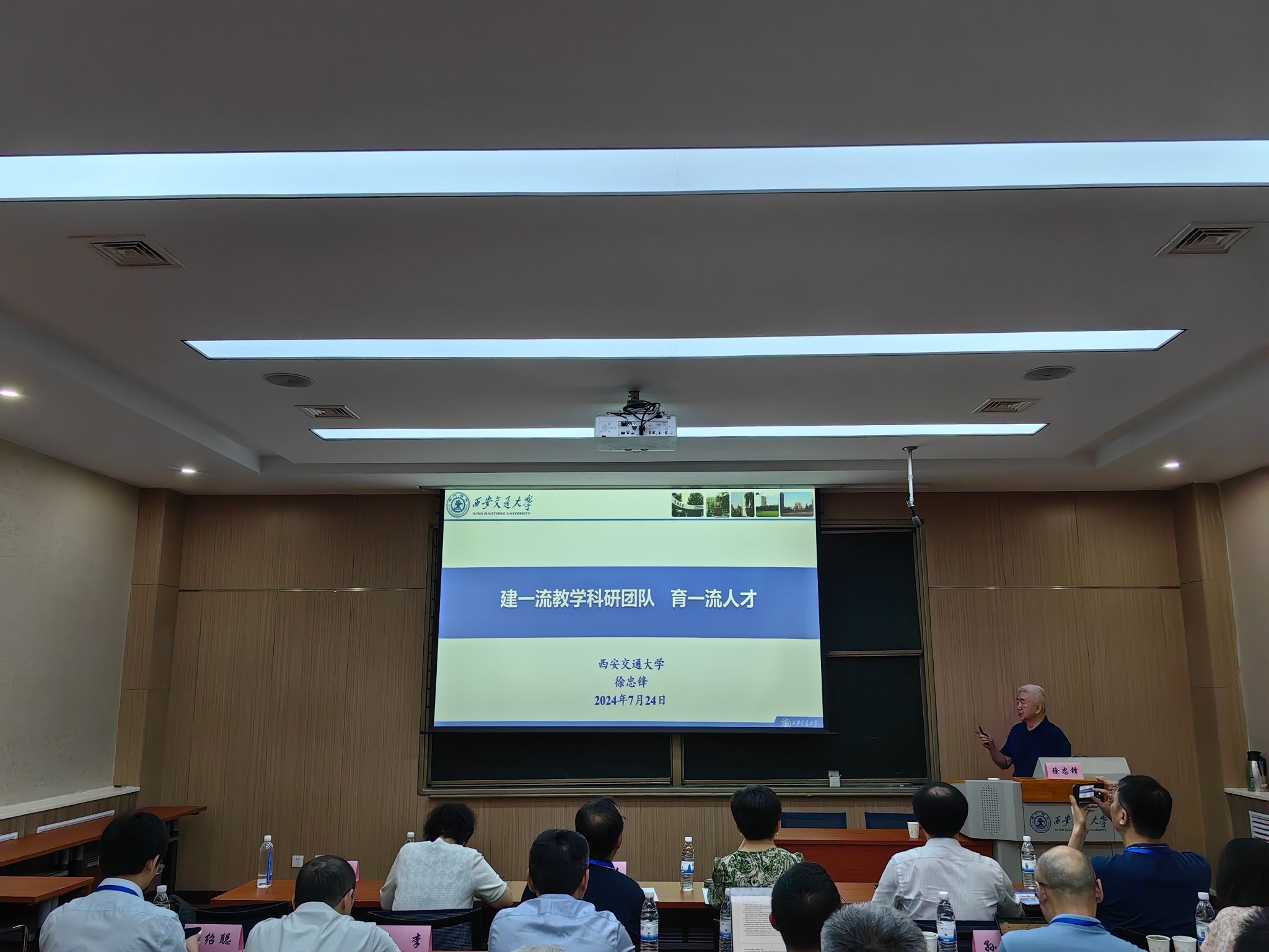培训班第一讲上,西安交通大学教师教学发展中心主任、国家教学名师徐忠锋教授以“建一流团队,育一流人才,做一流研究”为题,从课程团队建设、科研团队建设、AI赋能教学科研探索等三个方面进行了专题授课。