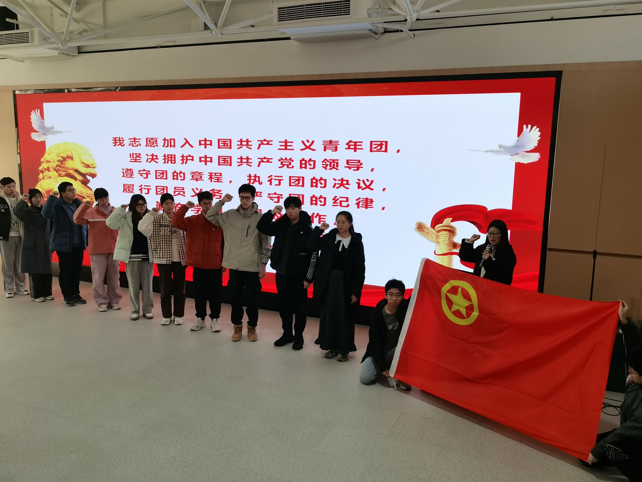 首先,举办新团员入团仪式,由学院团委副书记陈箫扬同学主持。学院团委老师为新团员佩戴团徽,新入团同学面向团旗庄严宣誓,这是青年担当的起点,激励他们以实际行动践行入团誓词。