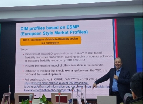 Gareth Taylor教授从电力通用信息模型(CIM)的概述、CIM的理论基础、CIM的技术运用以及CIM的优势优点四个方面对CIM技术及其相关标准进行了深入解读。在现场交流环节,与会人员与Gareth Taylor教授进行深入交流,大家对CIM标准在综合能源系统中应用等方面的热点问题进行了探讨。