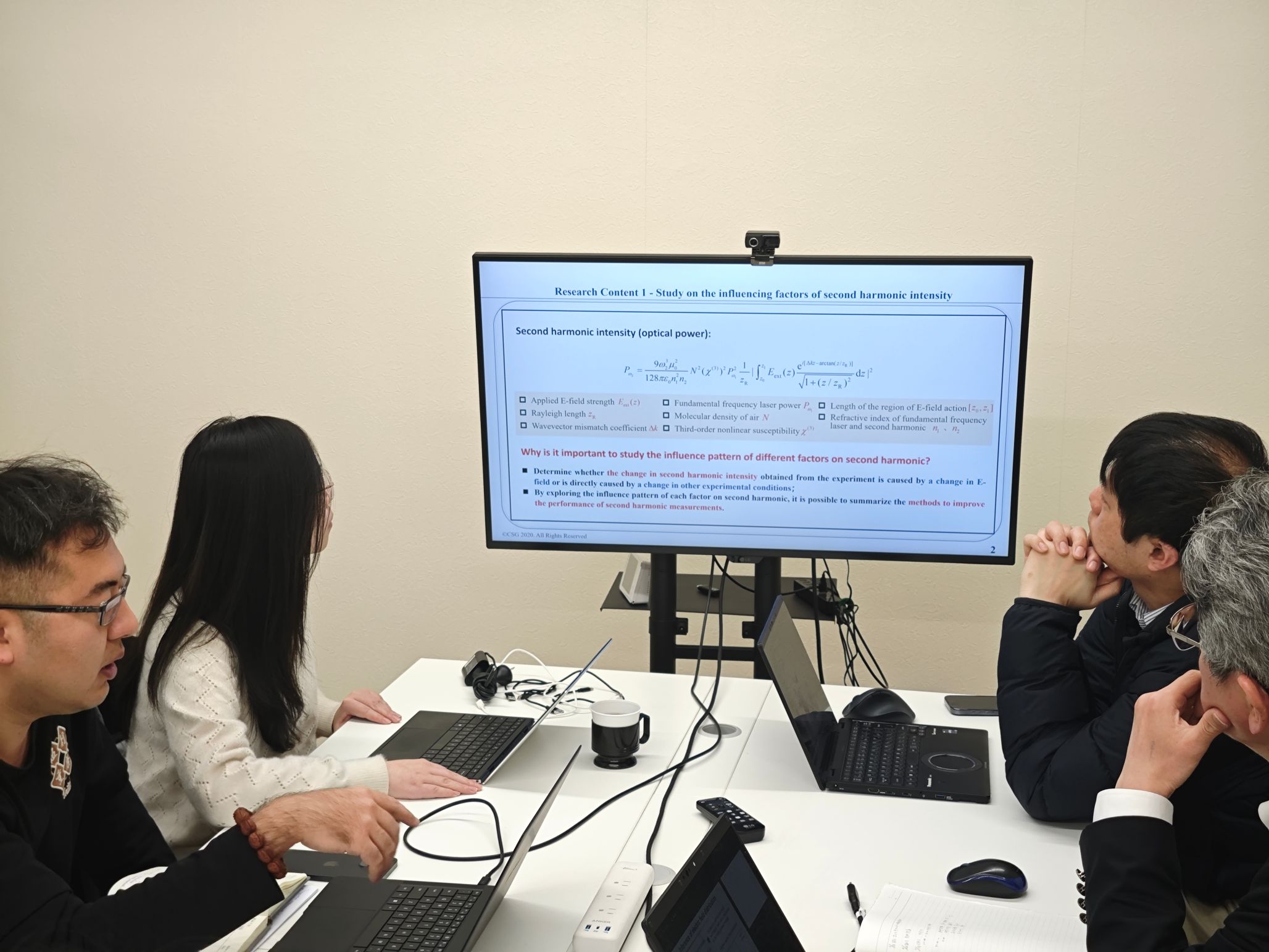 抵达东京大学后,两校师生进行了全面而深入的学术交流。双方详细介绍了各自的研究方向,并围绕电场诱导二次谐波的瞬态电场测量方法展开深入探讨,共同制定了后续研究计划。