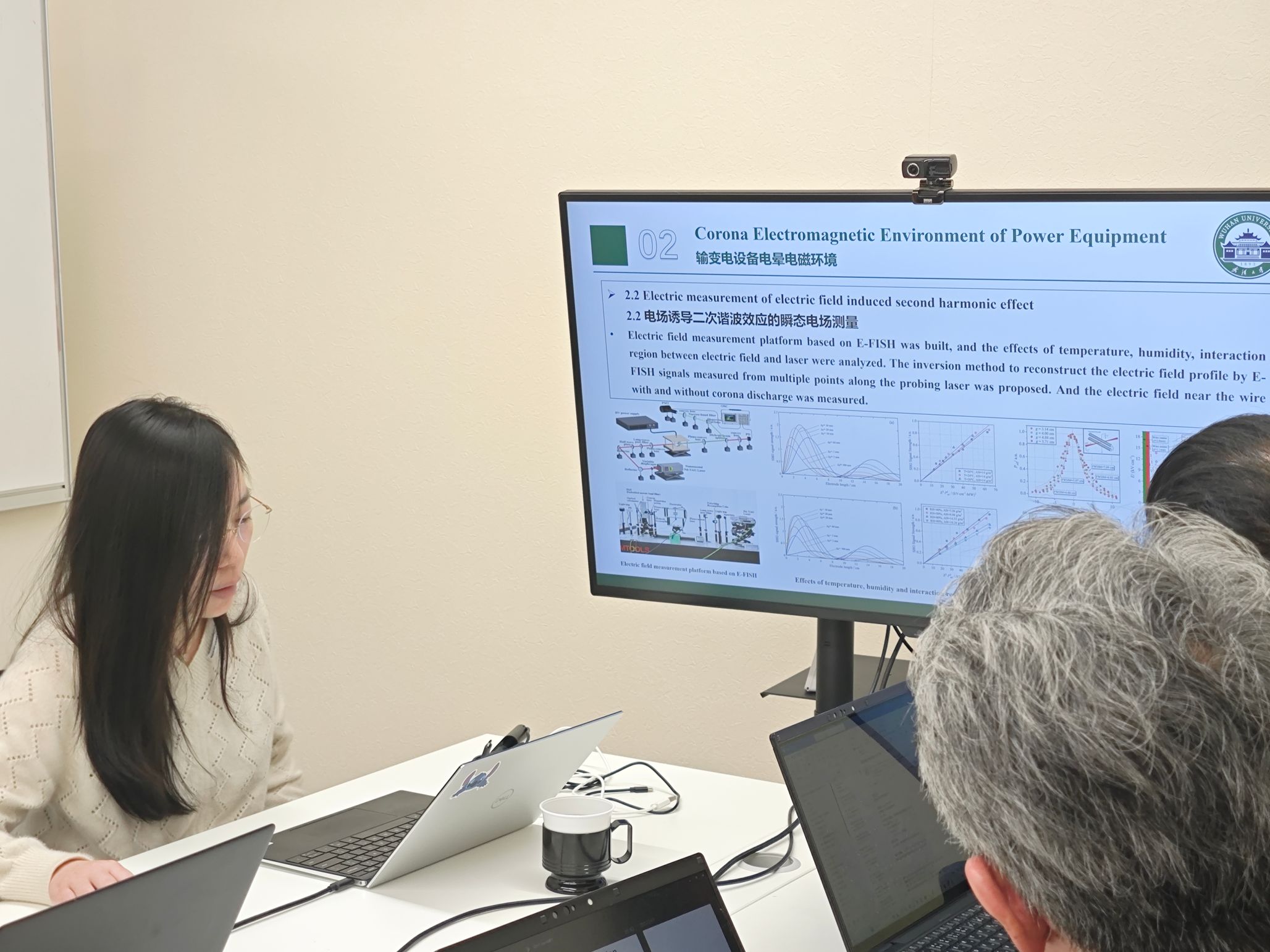 在藤井教授和陈小月副教授的带领下,双方团队在交流过程中开展了基于电场诱导二次谐波测量技术的电场测量实验,并取得显著进展。这不仅让实验团队从电场测量平台的搭建、测量分辨率的提升以及考虑空间电荷影响下的合成电场测量等方面获得了新的启发,还为后续的研究提供了宝贵的数据支持。