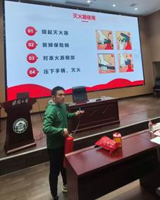 随后,校保卫处治安科科长任超老师为大家带来消防安全实操培训。他结合实验室常见火情特点,现场讲解并演示了灭火器及消防面罩的正确使用方法,强调“会用”比“有”更重要——关键时刻,规范操作才是有效应对初起火灾的关键。通过直观示范,师生们对消防器材的适用场景和操作要点有了更清晰、更具体的掌握。