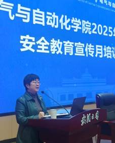 讲座伊始,学院副院长袁丽华老师为本次活动作开场致辞。她强调,实验室不仅是探索科学、孕育创新的摇篮,更是需要我们共同守护的安全空间。袁院长提醒全体师生:安全无小事,责任重于山。唯有将安全意识内化于心、外化于行,扎实掌握安全规范、主动参与应急实践,才能筑牢科研教学的“安全底线”,共建安心、有序、可持续的实验环境。