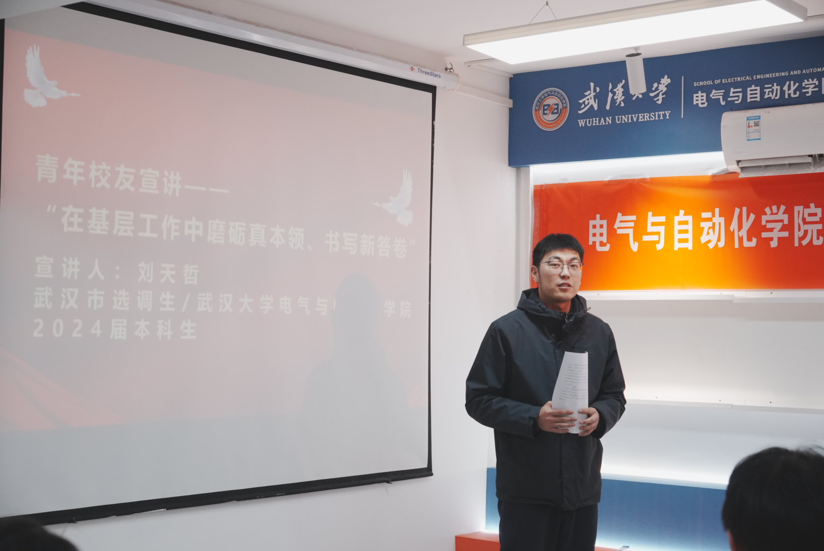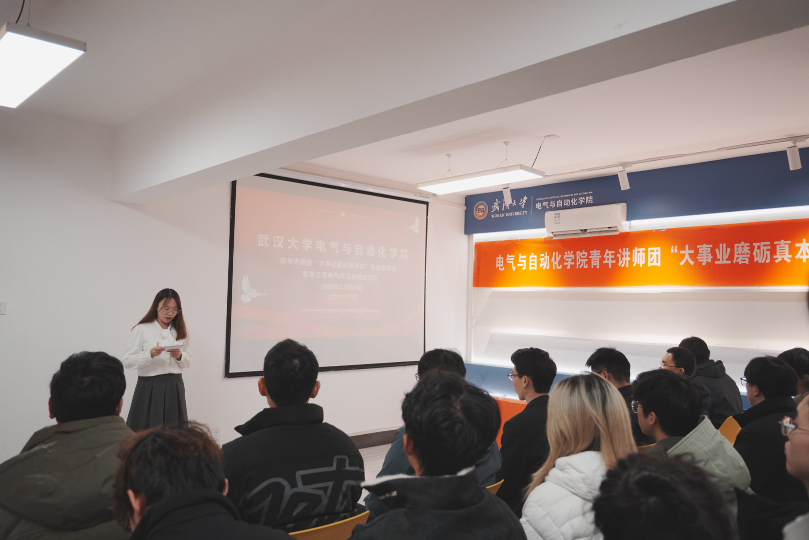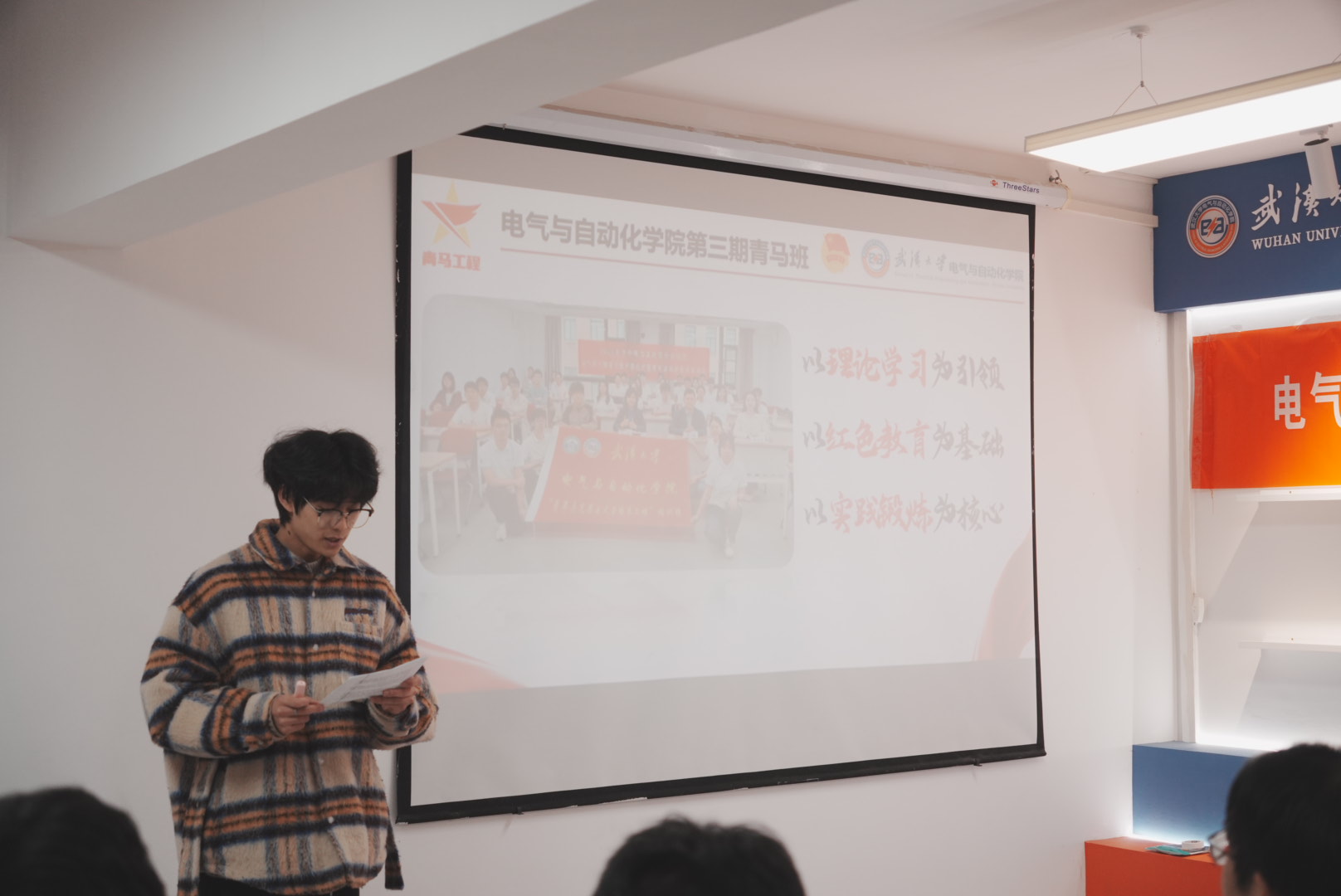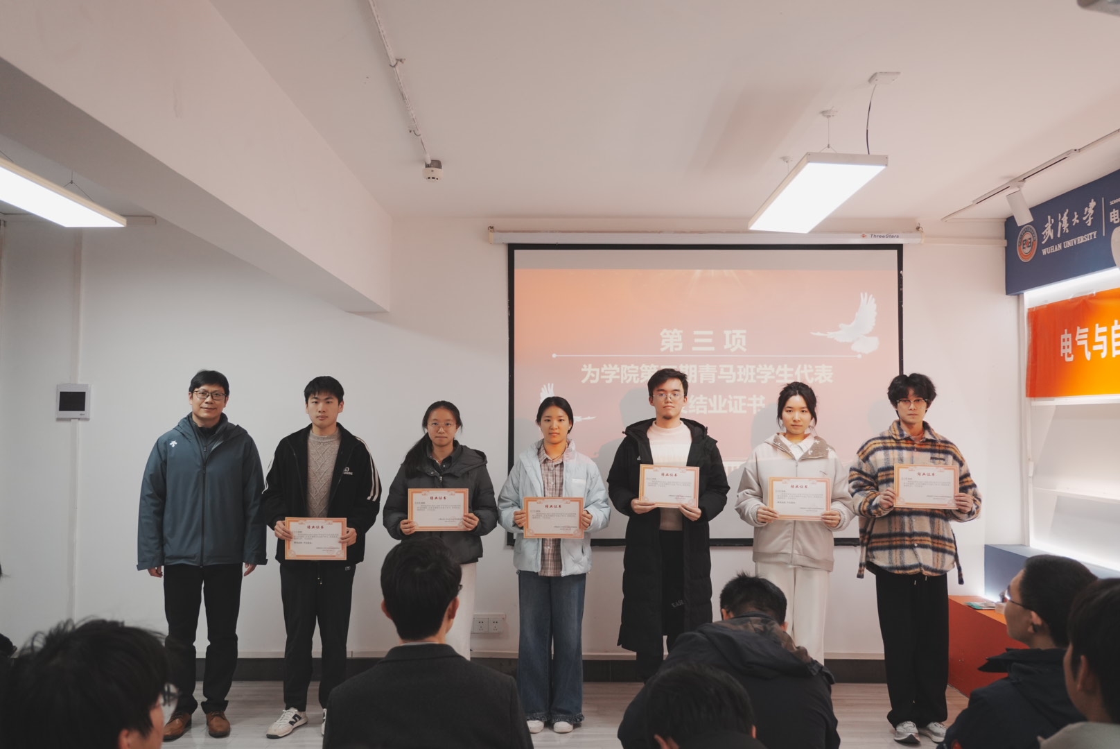 青年讲师团“大事业磨砺真本领”集体备课会暨第三期电气青马班结业仪式,在工学部2舍一站式学生社区616活动室举行。校团委副书记迟宗宝、学院党委副书记陈世银、学校第二批“大事业磨砺真本领”优秀青年团队负责人周蜜教授、武汉市选调生刘天哲院友等嘉宾莅临现场,学院团委书记邹春航、团委副书记周兵奇、青年讲师团成员代表及第三期青马班全体学员齐聚一堂,共赴这场青春与责任交织、理论与实践碰撞的盛会。本次活动由学院团委副书记(学生)郑敏主持。