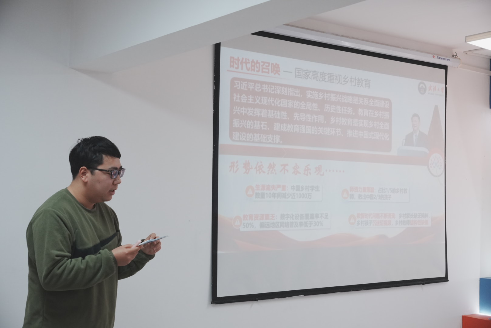学院2022级本科生王雨晨以《乡村教育振兴的青年答卷》为题,讲述了自己参与“大山里的魔法教室”公益项目的故事。他分享了在乡村支教过程中的所见所闻所感:从简陋的教室到充满创意的“魔法空间”,从孩子们懵懂的眼神到求知的渴望,他和团队用青春力量为乡村教育注入活力,用实际行动诠释了青年一代对乡村振兴的责任与担当。