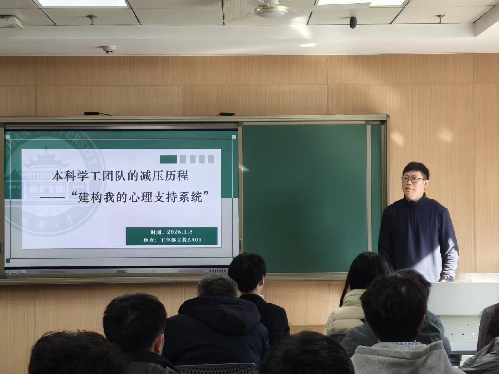 活动伊始,陈世银致辞。他指出,学校高度重视立德树人工作,学院积极响应学校号召,专职辅导员、兼职辅导员、班级导师、班级助理四支队伍努力形成合力,在学生思想政治教育、学业发展引导、心理健康关怀与职业规划指导等方面开展了系列有效工作,他代表学院向本科学工团队致以诚挚谢意。他表示,电气本科学生人数多、学业难度大,学生工作兼具复杂性与挑战性,学工团队常处于多重压力之下。学院始终关注大家的身心健康与职业发展,此次心理团辅便是学院积极回应需求、传递人文关怀、加强队伍建设的重要举措。最后,他引用习近平总书记新年贺辞中的殷切寄语,为大家送上“心有所悦,业有所成,万事皆可期”的美好祝愿。