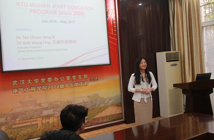 吴婉玲教授首先简要回顾了多年来NTU-WHU项目实施情况以及该项目本科生学习情况,随后陈全胜教授较为详细地介绍了该项目研究生培养方案以及在校生选课思考。最后,与会者用流利的英语和2位教授就项目申请准备、留学生活、深造机会、未来职业规划等问题进行了交流。会场气氛热烈,效果良好。讲座结束后,2位教授还对部分同学的问题进一步做了解答。