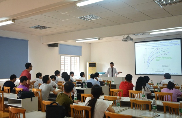 师生做了一场题为《modeling of Magnetic Characteristics of Electrical Steel Sheets for Simulation on Electirc Machines》的学术报告。村松和弘教授针对电气设备仿真中电工硅钢的复杂电磁场数值仿真与计算方法等方面进行前沿进展评述,介绍了他们团队近年来在电磁场数值建模、仿真计算、优化设计等方面所取得的进展。讲座结束后,村松和弘教授与师生就学术报告中的热点话题进行了热烈讨论和详细交流,让同学们受益匪浅。