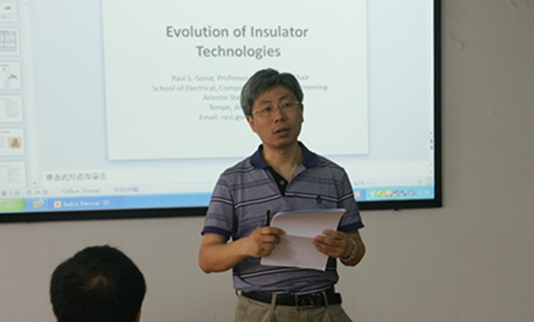 18日和19日上午,在学院院长助理林涛教授的主持下Gorur教授作了分别题为〝Overview of insulator technologies for outdoor power transmission and distribution〞和〝Research specific to dielectrics for power delivery〞的两场学术报告。