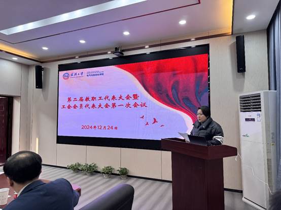 首先校工会副主席黄丽同志为大会致辞。黄丽副主席代表校工会向此次教代会暨工代会的顺利召开表示热烈祝贺,向全体教职工致以亲切问候。黄丽副主席充分肯定了学院在教学、科研和教职工权益保障等方面的工作成绩,希望学院能以此次会议为契机,进一步凝聚教职工力量,推动学院各项事业迈向新台阶。