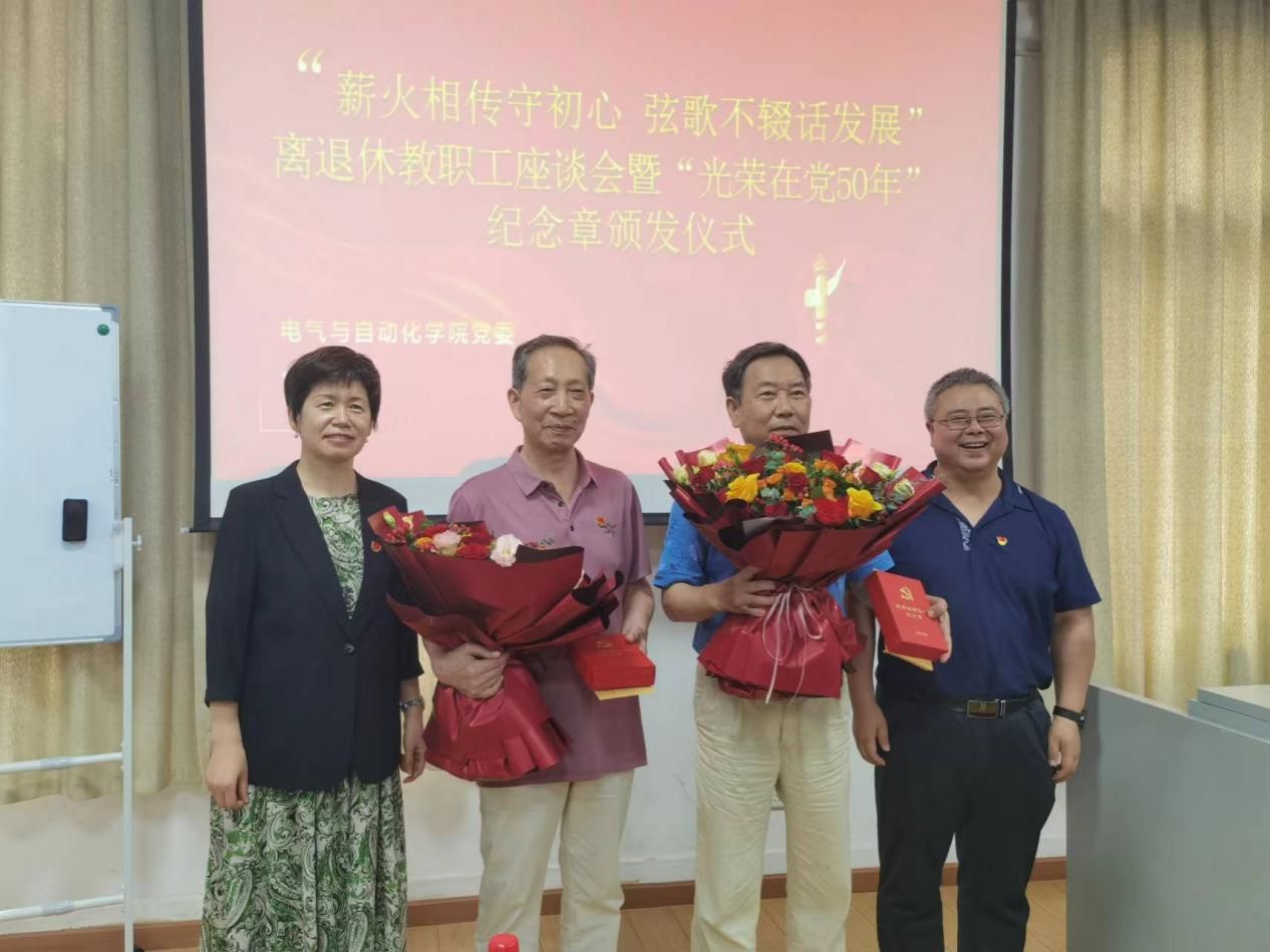 在工学部退休办公室会议室举办“光荣在党50年” 纪念章颁发仪式暨离退休教职工座谈会。学院党委书记马淑杰、院长董旭柱、副院长袁丽华出席会议,学院离退休教职工代表和在校教职工代表参会。袁丽华、舒迺秋分别主持纪念章颁发仪式和座谈会。