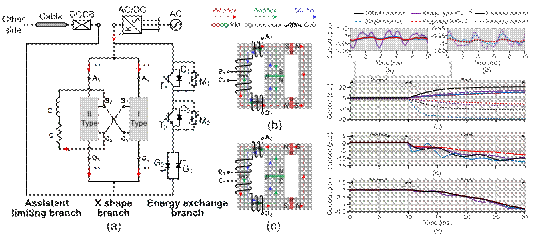 直流限流器主要安装于换流站直流出口侧与直流断路器间,起到抑制故障作用,但需要明确电流方向。因此,论文提出一种新型桥式双向直流限流器(Hybrid X Type DCSFCL, HXFCL)拓扑结构来解决双向限流问题具有重要意义。HXFCL基于现有柔直系统运行/故障特性,采用桥式电路结构双向导通原理,将桥式连接的互感耦合限流电磁模块与辅助限流支路巧妙结合,实现双向故障自动限流、快速故障开断及潮流快速调整效果。