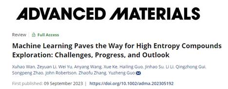 郭宇铮教授课题组已在人工智能和高熵化合物这一交叉学科领域取得许多成果,发表在《Nature》《Patterns》《ACS Catalysis》等国际顶尖学术期刊上,相关链接如下:
