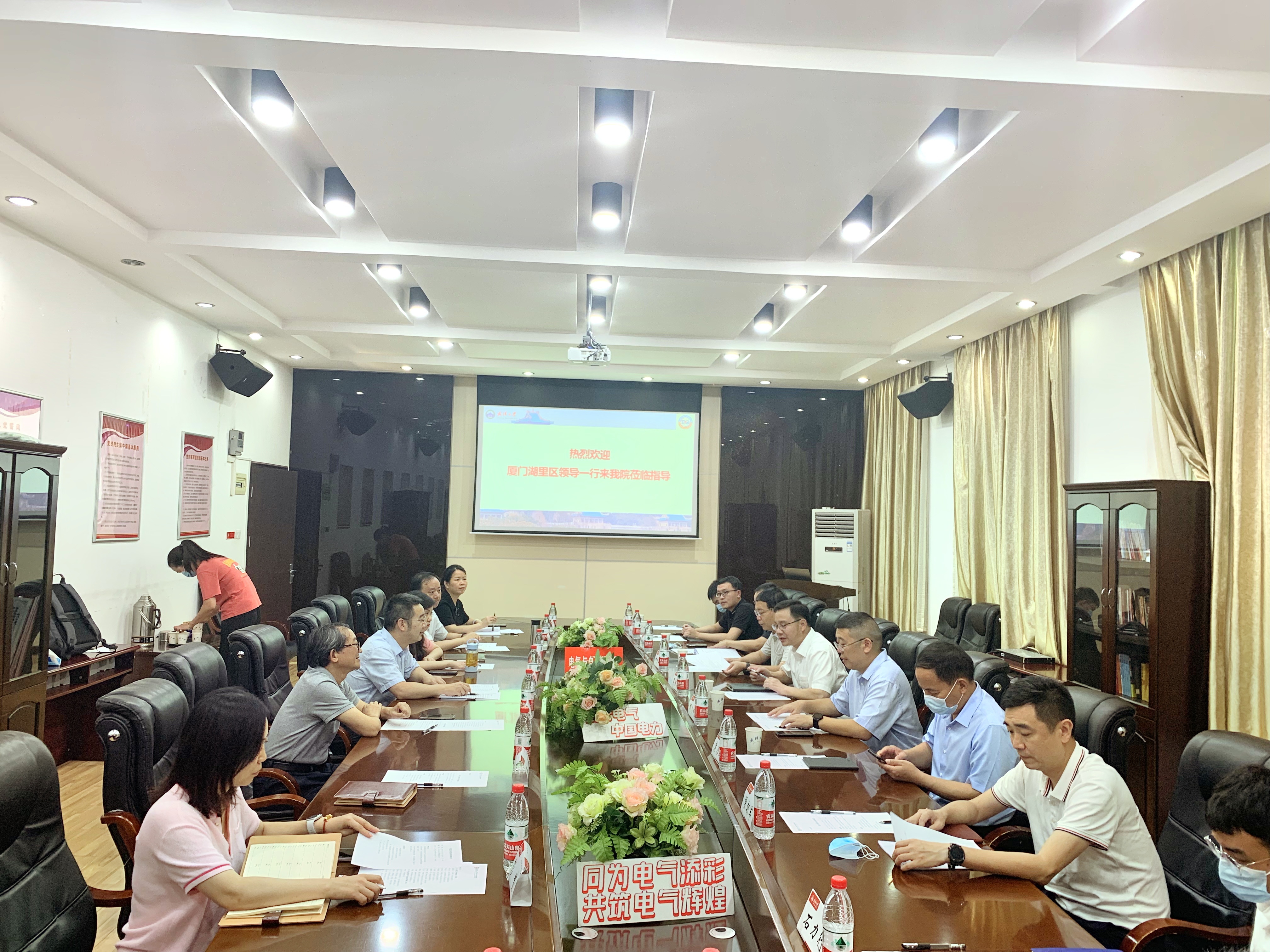 722日下午,厦门市湖里区委书记、副区长、区发改局局长、工信局局长、商务局局长、ABB中压开关柜全球质量经理、智能输配电产业联盟秘书长一行12人来院调研,学院党委书记郭新立、党委副书记上官海兰、副院长何怡刚、袁佳歆陪同调研。