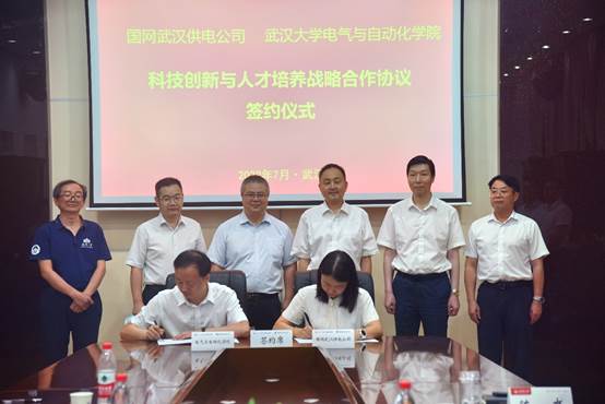 7月15日,学院与国网武汉供电公司签署科技创新与人才培养战略合作协议,武汉供电公司总经理夏怀民,学院党委书记郭新立、院长董旭柱出席签约仪式,武汉供电公司总工程师曾海燕与副院长袁佳歆代表双方签署协议。