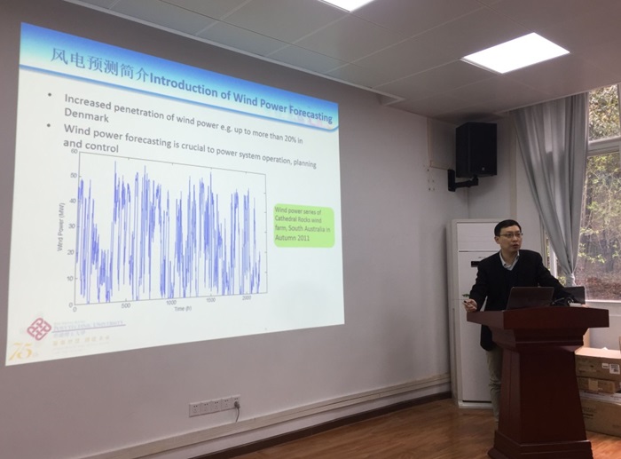 许昭副教授,在报告中,简单的介绍了自己课题组研究规模,研究方向以及进展。之后,详细讲解了其课题组正在研究的风电系统控制建模和预测,以及风力发电机组低电压穿越控制方面做的创新工作。