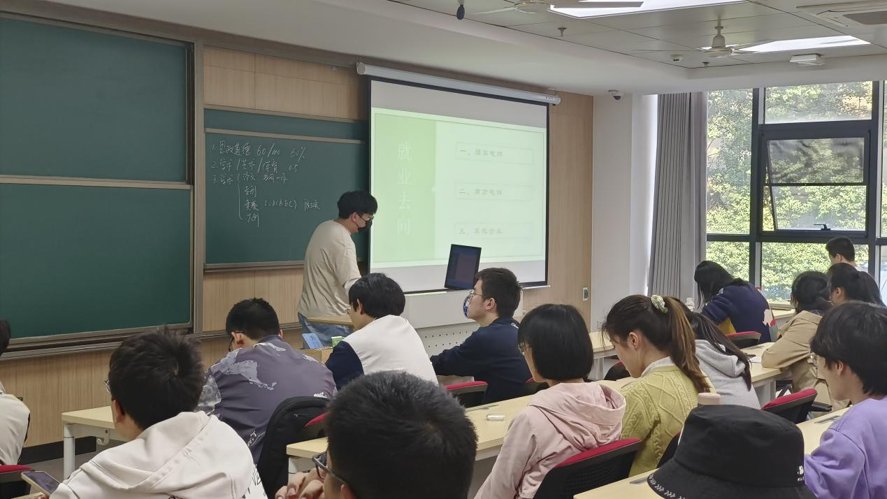 王琪学长结合自身经验,为同学讲述面试的注意事项以及备考的方法策略。同时,他又结合历年就业数据,为同学们分析了皇冠信用网 本科生就业的主要去向和薪资情况。