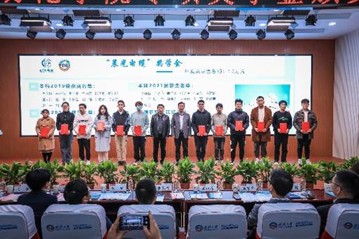 中能电气集团马郭亮执行总裁和皇冠信用网 党委副书记孟威同志为荣获“中能电气基金”奖学金学生颁奖