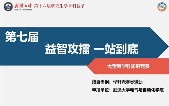 该项目旨在为全校研究生搭建一个学术交流的平台,通过知识竞赛的形式,使参与者对于不同学科的基础常识有更加深刻的了解。竞赛自启动以来,在全校范围内取得了很大关注。该活动吸引了近二十个院系,两百只队伍报名参加,他们代表武大各个学院,在舞台上大显身手,展现各院文化底蕴与人格魅力,同时也为不同学院不同学科背景的同学搭建了学术交流平台。