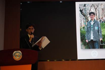 第五届研究生会主席团候选人彭斌、周思涵、余心悦、汤骏、王江等5名研究生会主席团候选人依次登台进行竞选演讲,并分别抽取问题并回答。