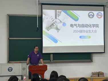 在工学部第五教学楼303教室召开2024届毕业生大会。本次大会由研究生辅导员邹春航老师主持,学院党委副书记孟威老师、研教办杨战辉老师以及研究生兼职辅导员苏大智老师出席会议,学院2024届全体研究生同学参与。