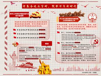 作品介绍:习近平总书记在党的二十大报告中强调“青年强,则国家强”;指出“当代中国青年生逢其时,施展才干的舞台无比广阔,实现梦想的前景无比光明”;对广大青年提出了“立志做有理想、敢担当、能吃苦、肯奋斗的新时代好青年”的殷切寄语。在学习党的二十大及其报告后,作为当代青年应当领会党的二十大精神,用青春书写华章,用奋斗践行使命。“坚定不移听党话、跟党走,怀抱梦想又脚踏实地,敢想敢为又善作善成”,方能不负这青春热血、广阔舞台、光明前景,为全面建设社会主义现代化国家、全面推进中华民族伟大复兴贡献青春力量。