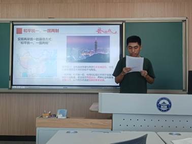 褚昱麒的演讲题目为《祖国统一必将实现》,他以台湾问题为切入点,分享了对党的二十大报告中坚持和完善“一国两制”推进祖国统一的理解和认识,然后回归电力行业的发展和电气青年的身份指出我们能为国家统一的实现做出很多努力,呼吁大家同心同德、同向同行,汇聚起促进祖国完全统一的磅礴伟力。