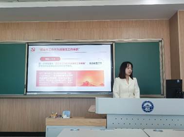吴艳梅以《凝聚榜样力量,扛起时代担当》为题,分享了赵小亭学姐和研究生支教团支教的榜样故事,勉励大家要凝聚榜样力量,立下“不负使命,砥砺前进”的凌云志,练就“不惧风险,可堪重任”的宽肩膀,争当“不懈奋斗,默默耕耘”的实践者。