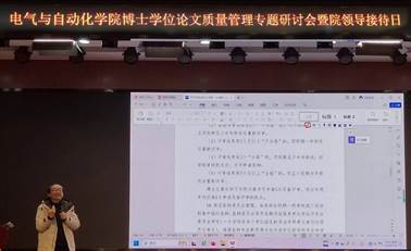 进一步加强博士学位论文质量管理若干措施》,何怡刚院长从入口管理、过程管理、出口管理、不同年级对文件的执行要求四个角度出发开展了详细的政策解读与答疑工作。在入口管理方面,他就生源质量、导师管理的要求进行介绍;在过程管理方面,他就综合考试、论文开题、预答辩等方面的要求进行了详细解读;在出口管理方面,他就双盲评审的要求、问题论文对同学、导师、培养单位的约束措施、最长学习年限等方面的内容进行了详细解读;在不同年级对文件的执行要求方面,他对不同年级如何执行该文件进行了具体介绍。他表示,各位同学要精准把握政策内容,及时与导师进行沟通,按部就班踏实完成每一时间节点的任务,提高论文质量,避免过度焦虑,学院会尽最大可能为同学们提供支持和帮助。