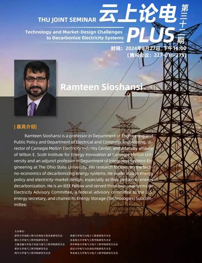 本期学术讲座邀请到美国卡内基梅隆大学Ramteen Sioshansi教授。