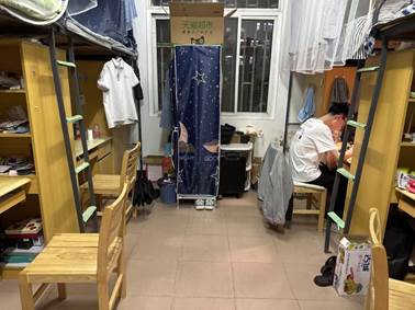 所有研究生宿舍。此次检查聚焦于宿舍的地面清洁度、床铺与桌面的整理状况,以及用电安全等多个维度。检查结果显示,多数宿舍展现出了良好的生活习惯,床铺与桌面摆放得井井有条,地面光洁无积尘,室内环境清新无异味,且严格遵守了用电规范,未出现私拉电线或违规使用大功率电器的情况。然而,也有少数宿舍在检查中暴露出了卫生状况不佳的问题,具体表现为室内杂物散乱无章、存在难以忽视的气味等。针对这些问题,检查小组立即向相关宿舍成员提出了明确的改进意见,并强调了维护宿舍卫生对于营造健康生活环境的重要性。同时,检查小组表示将在后续的检查中继续跟进,确保问题得到有效解决。