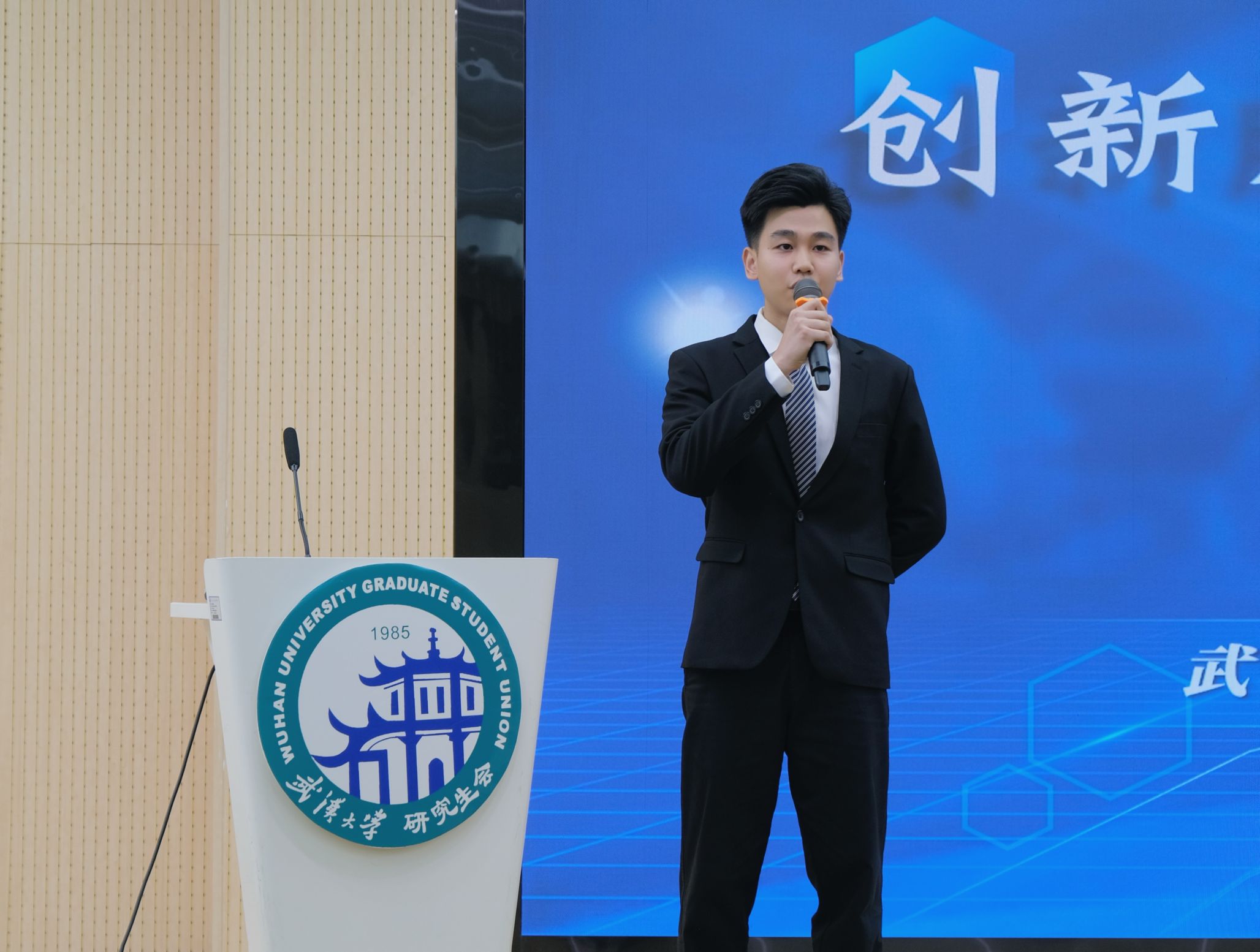 研究生会主席团成员张梦皓以《创新服务谋发展,电耀珞珈续新篇》为主题,通过“电闪星辉,旗帜鲜明铸铁军”“电映明窗,新兴媒体传正气”等六个特色篇章,全方位呈现了电气研会在思想引领、品牌建设、服务创新等领域取得的突出成效。