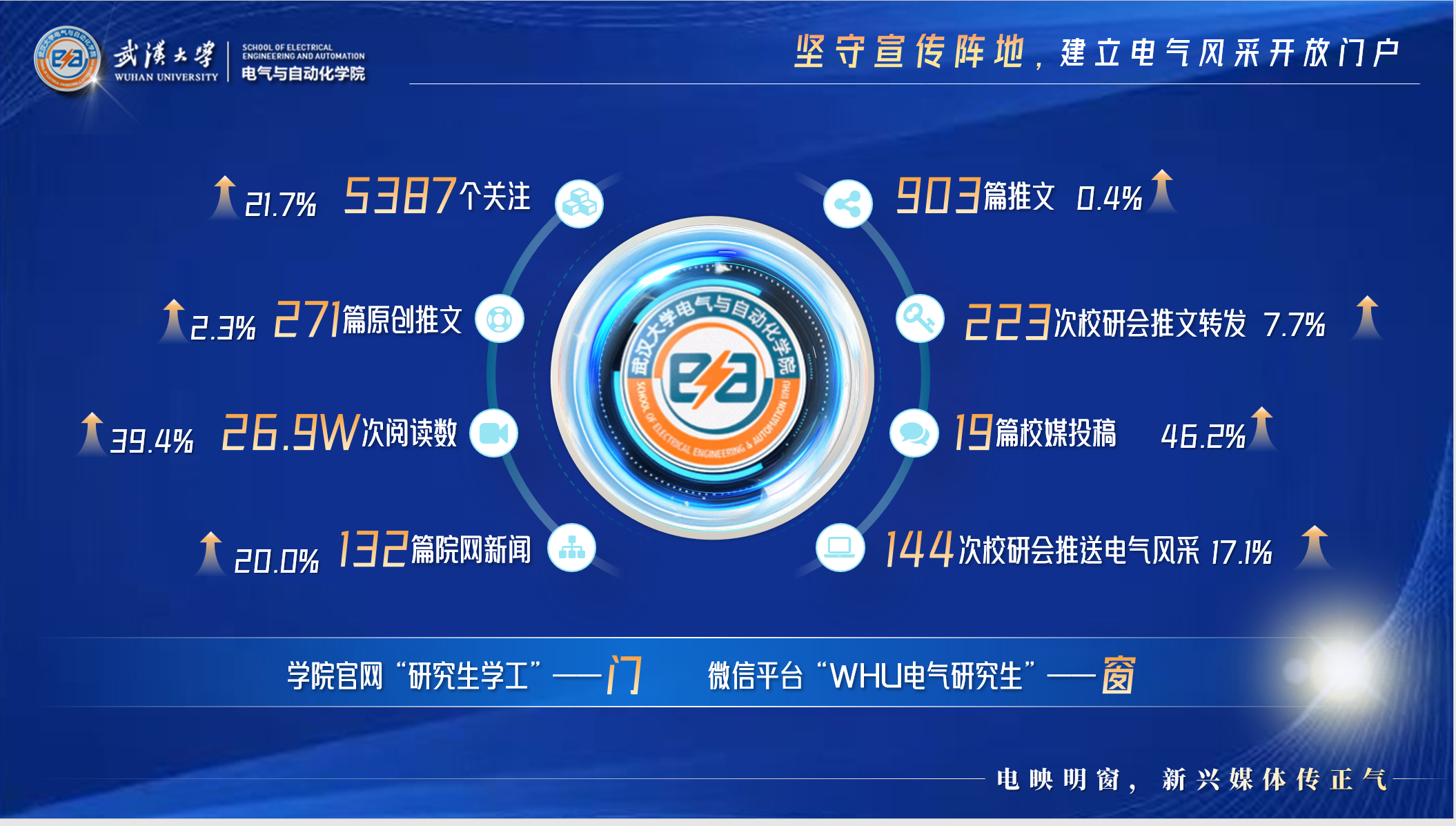 学院官网与微信公众号是电气研会的“门”和“窗”。8组宣传数据凝聚了电气研会的点滴耕耘。