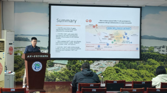 孙正旺以“skin-resident natural killer T cell participate in cutaneous allergic inflammtion in atopic dermatitis”为主题展开学术分享。作为纳米医药领域的优秀学者,他结合自己的研究工作,详细阐释了新型无PEG纳米颗粒的研发原理,展示了纳米抗体偶联药物在皮肤免疫治疗中的突破性应用,并通过临床前数据论证了该技术在提升靶向性和安全性方面的显著优势。报告特别针对传统纳米药物递送系统的技术瓶颈,分享了纳米抗体偶联药物递送和精准免疫治疗领域等多项创新性成果。